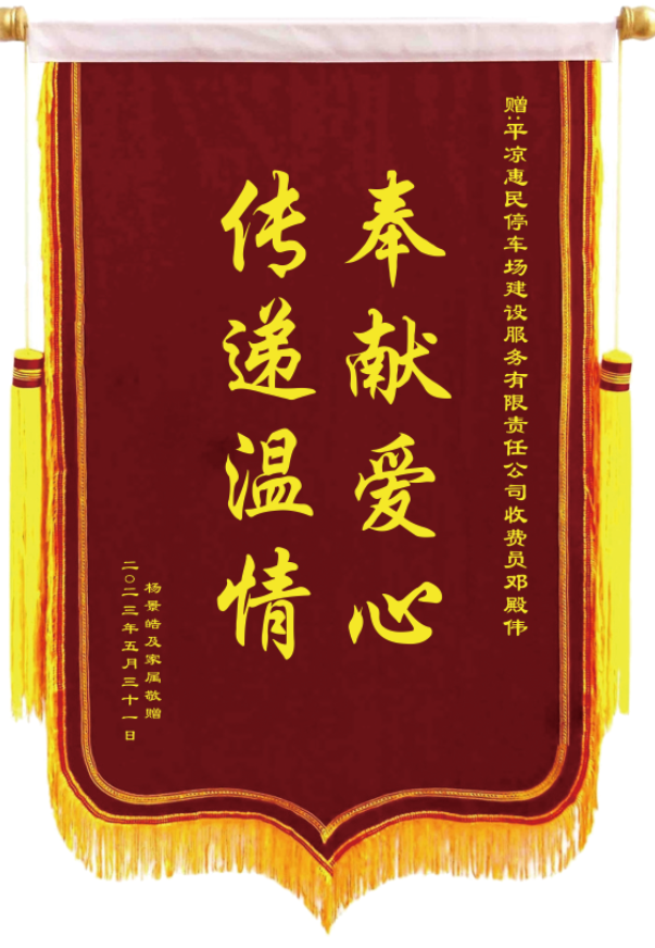 5月31日下午,一對老人和一位年輕的母親領著大約5歲的男孩為停車場公司送來一面錦旗,對停車收費員鄧殿偉助力尋親之舉表達感激之情。