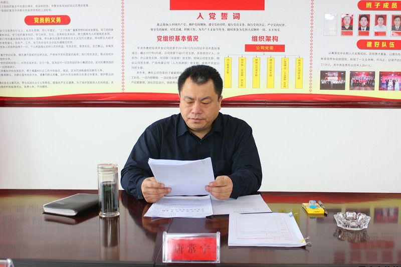 黨委副書記、總經理唐常寧就召開好公司黨委2017年度黨員領導干部民主生活會有關工作進行了部署。唐常寧強調,開好黨員領導干部民主生活會是深入貫徹落實黨的十九大精神的一項重要舉措,也是公司黨委政治生活中的一件大事。要通過學習研討,深刻領會習近平新時代中國特色社會主義思想的歷史地位和豐富內涵,搞清楚、弄明白“八個明確”主要內容和“十四個堅持”基本方略的重大創新思想創新觀點,為開好民主生活會打牢思想基礎。要緊扣民主生活會主題,重點從六個方面查找問題,牢固樹立“四個意識”,堅定“四個自信”,做到“四個服從”,堅決維護習近平總書記在黨中央和全黨的核心地位、維護黨中央權威和集中統一領導,自覺在政治上思想上行動上同以習近平同志為核心的黨中央保持高度一致。要緊密聯系實際進行黨性分析,廣泛征求意見,深入開展談心談話,對照黨章等黨內法規,對照初心和使命,對照形式主義、官僚主義新表現十種情況,堅持問題導向,強化問題意識,把自己擺進去,把思想擺進去,把工作擺進去,并認真撰寫個人發言提綱。要通過本次民主生活會,貫徹整風精神,勇于自我革命,開展積極健康向上的批評和自我批評,達到堅持真理、修正錯誤,增進團結,振奮精神的目的。