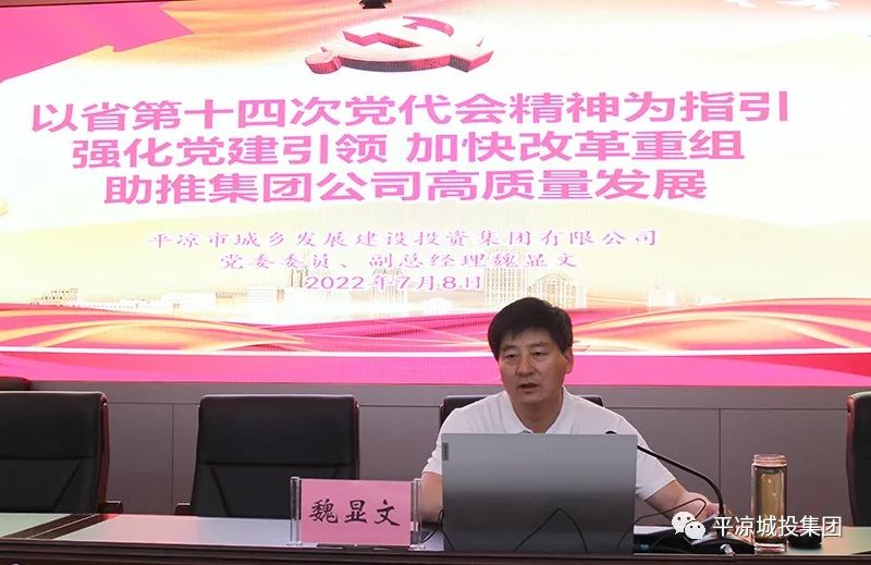 按照集團公司黨委安排,7月8日下午,公司黨委委員、副總經理魏顯文為包抓支部黨員講授題為《以省第十四次黨代會精神為指引 強化黨建引領 加快改革重組 助推集團公司高質量發展》的黨課。機關第二黨支部、城建投公司黨支部、城發建筑公司黨支部、文化傳媒公司黨支部全體黨員認真聆聽了黨課。