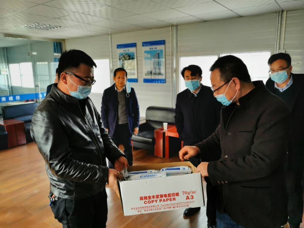 3月9日下午,公司副總經(jīng)理馬新平、總工程師高健帶領(lǐng)安監(jiān)部、房地產(chǎn)公司負責(zé)人,對平?jīng)鲆恢泻陀叭A府項目工地疫情防控工作開展督查檢查,并就具體工作進一步作了安排部署。同時,督查組代表公司黨委,為在建項目工地送去了醫(yī)用口罩防疫物資。