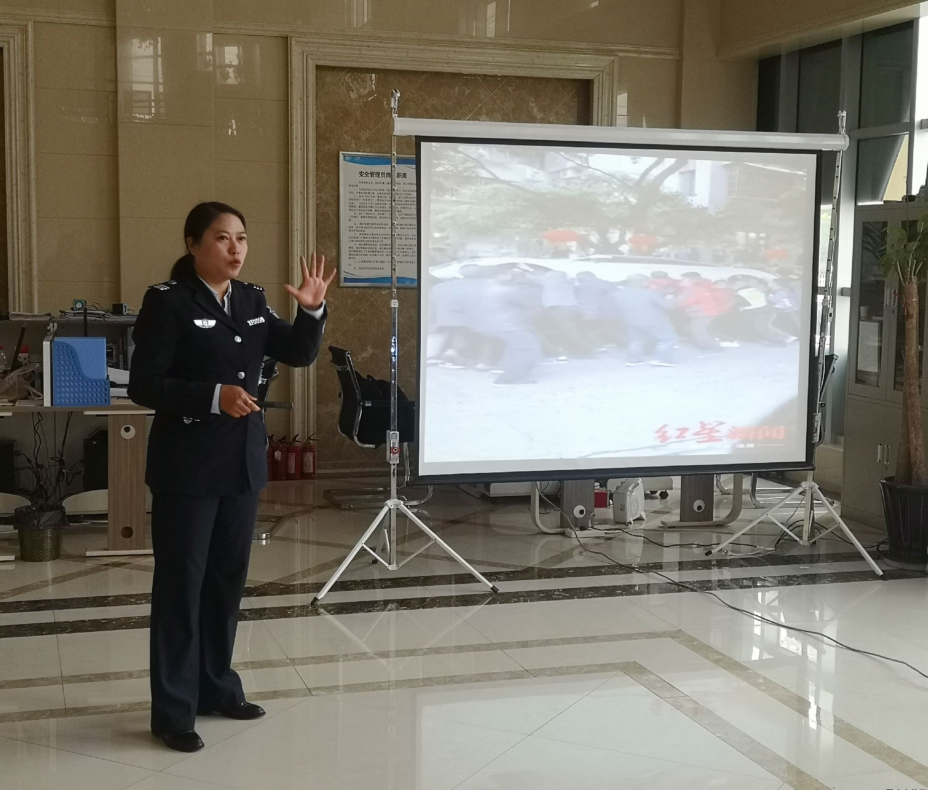 朱教官針對消防安全的實際情況,結合在工作和生活中用電、用氣、用火的知識,介紹了事故發生的原由及所造成的危害情況,詳細講解了發生火災后的自防、自救、逃生技巧,并按種類、功能、用途介紹了不同的滅火器,重點介紹了滅火器、滅火毯等消防設施的使用方法,火場逃生及應急疏散的方法和原則。
