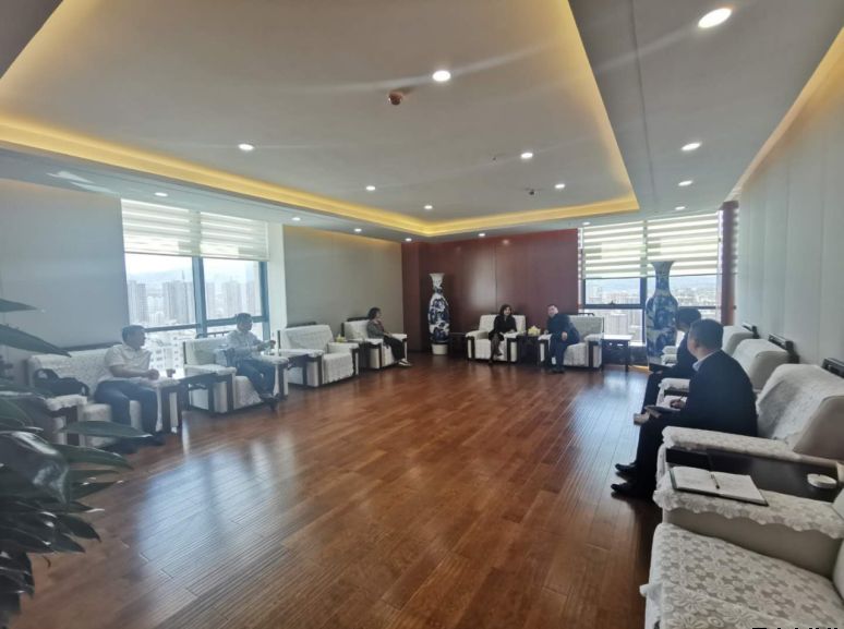 5月27日下午,華龍證券股份有限公司副總裁、高級經濟師楊艷麗一行三人到訪公司洽談業務,受到公司黨委書記、董事長唐常寧的熱情接待,融資部相關工作人員參加座談交流。