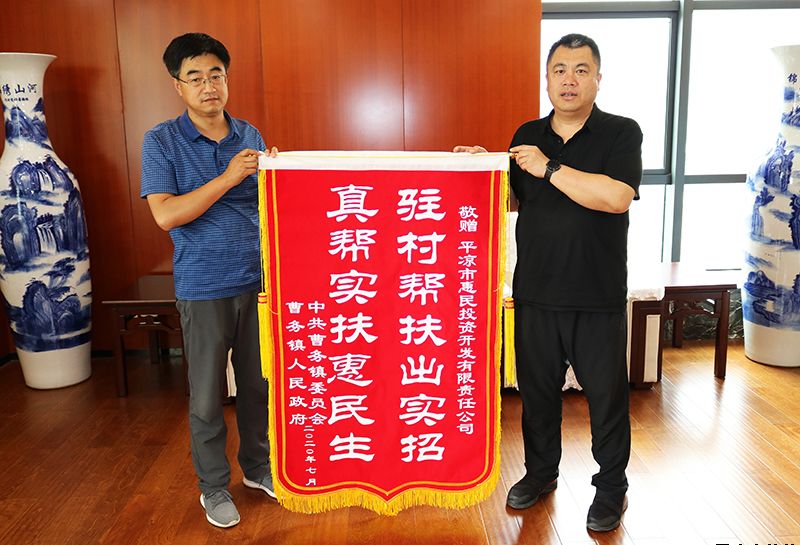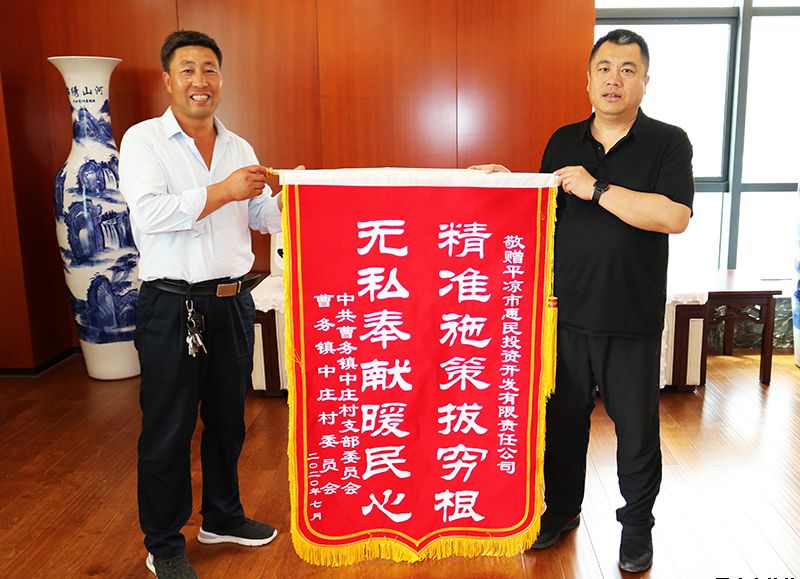 7月3日,靜寧縣曹務鎮黨委書記徐小勝、鎮政府梁濤、曹務鎮中莊村黨支部書記兼村委會主任霍小軍、曹務鎮柳岔村黨支部書記兼村主任柳和顯等一行4人到市惠民公司,代表靜寧縣曹務鎮黨委、鎮政府及中莊村、柳岔村,向市惠民公司敬贈錦旗,對惠民公司一直以來大力幫扶救助表示衷心感謝。市惠民公司黨委書記、董事長唐常寧代表公司接受錦旗,黨委委員、副總經理鄭忠軍參加儀式。