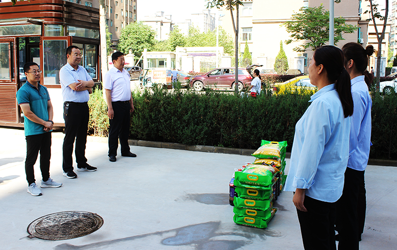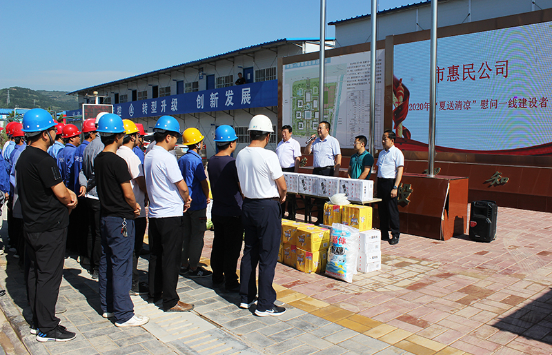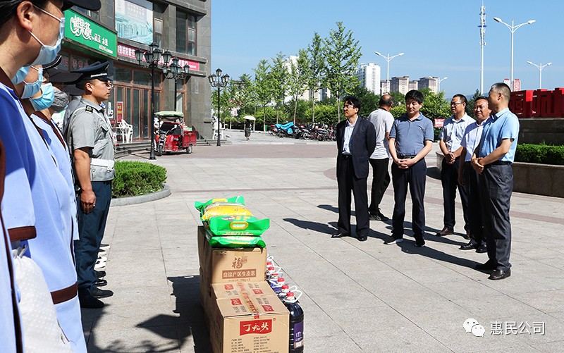 8月7日,受市惠民公司黨委書記、董事長唐常寧委托,公司黨委委員、總經理胡紅訓,副總經理魏顯文、王徐周、鄭忠軍、馬新平、柳振源,總工程師高健,總經濟師王國太分組帶領黨委辦(辦公室)和工會相關負責人深入惠通公司、平涼一中項目、惠民花園物管站、御景華府、惠民大廈、新城國際物管站、柳湖路苗圃、新北嘉園物管站、法院服務中心、平涼賓館立體停車庫,向奮戰在一線的基層員工送去慰問,并將公司準備的慰問品送到他們手中。