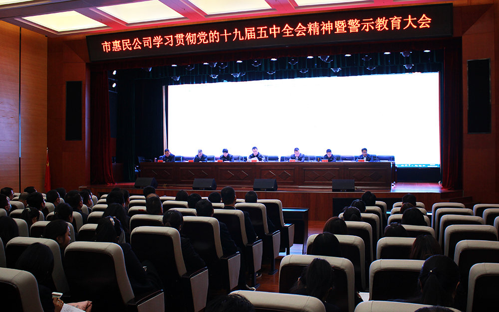 11月3日,市惠民公司召開學(xué)習(xí)貫徹黨的十九屆五中全會(huì)精神暨警示教育大會(huì),黨委書記、董事長唐常寧主持會(huì)議并講話。會(huì)上,黨委委員、副總經(jīng)理魏顯文全文領(lǐng)學(xué)了《黨的十九屆五中全會(huì)公報(bào)》,組織觀看了兩部警示教育專題片,教育引導(dǎo)公司全體黨員和干部筑牢拒腐防變的思想防線,為推動(dòng)公司持續(xù)健康發(fā)展作出應(yīng)有的貢獻(xiàn)。