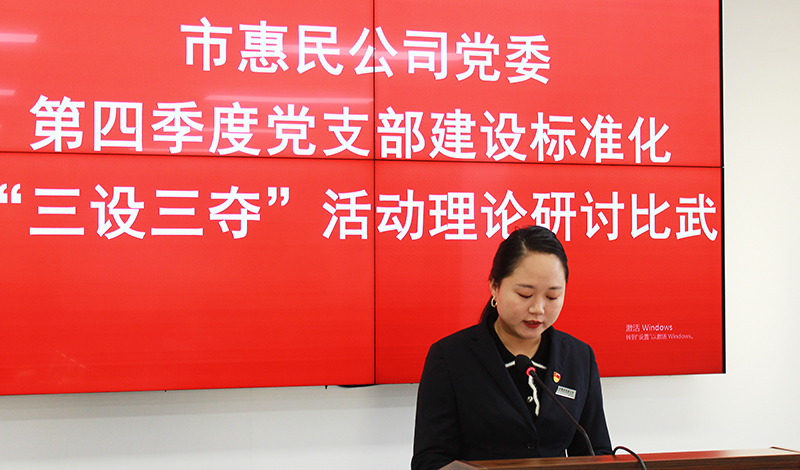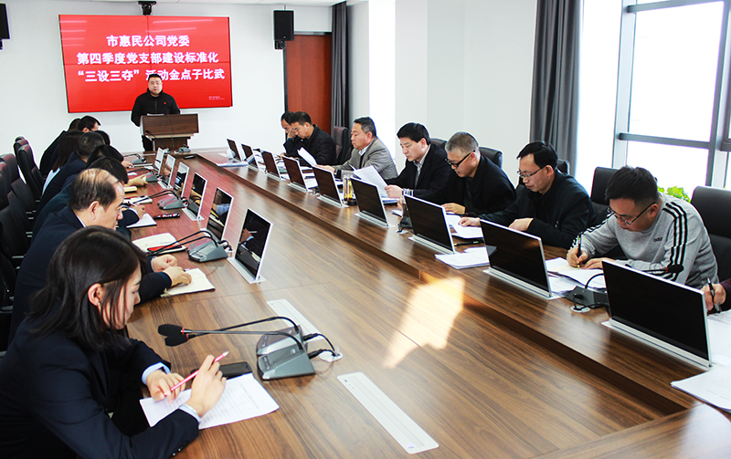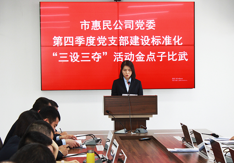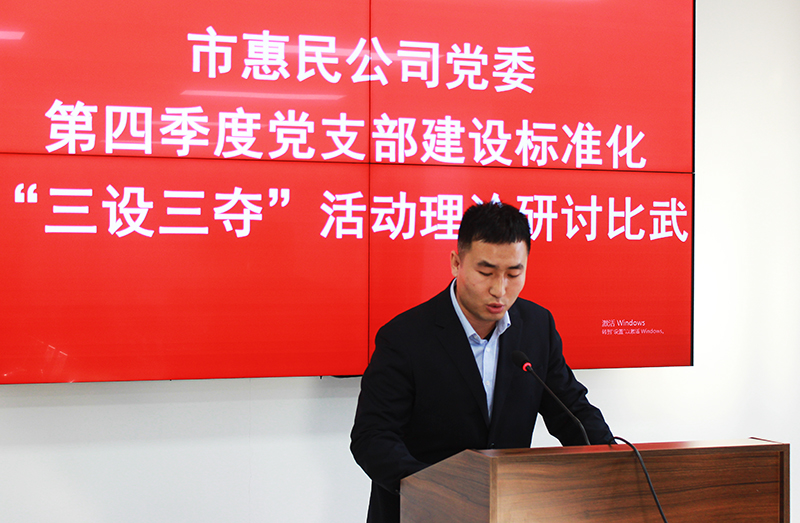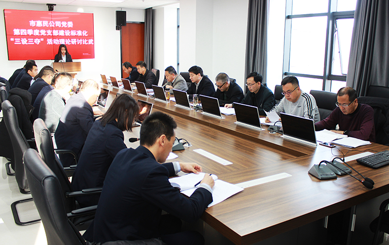 12月22日,市惠民公司黨委組織開展第四季度黨支部建設標準化“三設三奪”活動?;顒佑墒谢菝窆军h委委員、副總經理魏顯文主持,副總經理鄭忠軍、柳振源出席活動,中層干部及黨員代表共計40余人參加活動。