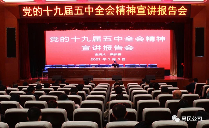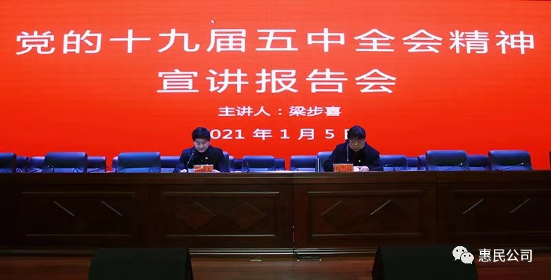 1月5日,市惠民公司舉辦學習貫徹黨的十九屆五中全會精神宣講報告會,邀請市委講師團副團長梁步喜同志作專題輔導報告。公司黨委委員、副總經理魏顯文主持會議,在家的公司領導班子成員、中層干部、全體黨員及下屬公司內設主管,共計70多人參加會議。