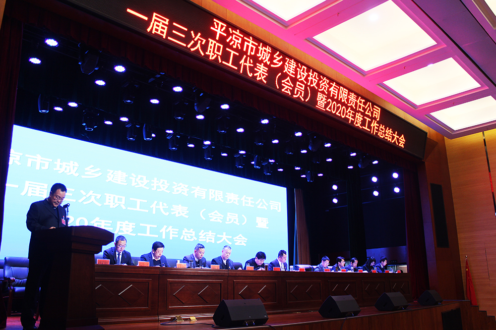 在職工代表大會上,平涼城投(惠民公司)黨委委員、總經理胡紅訓作了2020年度工作報告,總經濟師王國太作了公司“十四五”發展戰略規劃編制說明,黨委委員、副總經理、工會主席鄭忠軍作了2020年度工會工作報告,副總經理王彥彥作了2020年度工會經費審查報告,副總經理王徐周通報了一屆二次職工代表大會提案辦理情況,職工代表還分組討論了大會上的三個報告并填寫了提案征集表。在總結大會上,總工程師高健宣布了一屆三次職工代表大會決議,通報了2020年度績效考核目標管理責任書考核情況,副總經理馬新平通報了2020年度安全生產目標管理責任書考核情況,黨委委員、副總經理魏顯文宣讀了2020年度優秀員工表彰獎勵決定,表彰了33名優秀員工。