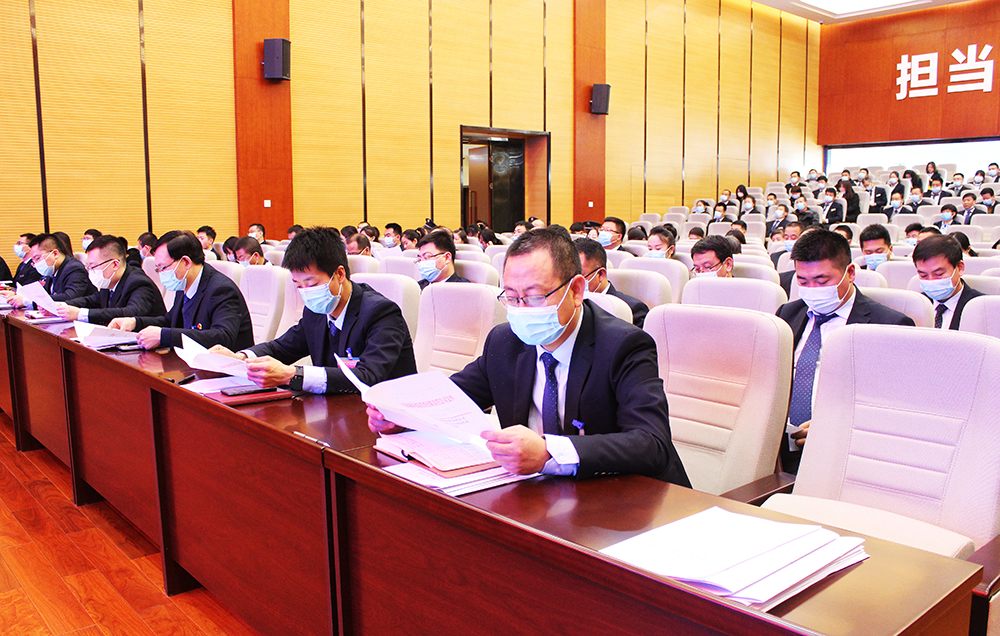 會議分為上午和下午兩個階段召開,第一階段召開公司一屆三次職工代表大會,由公司黨委委員、副總經理、工會主席鄭忠軍主持。第二階段召開公司2020年度工作總結大會,由公司黨委委員、總經理胡紅訓主持。