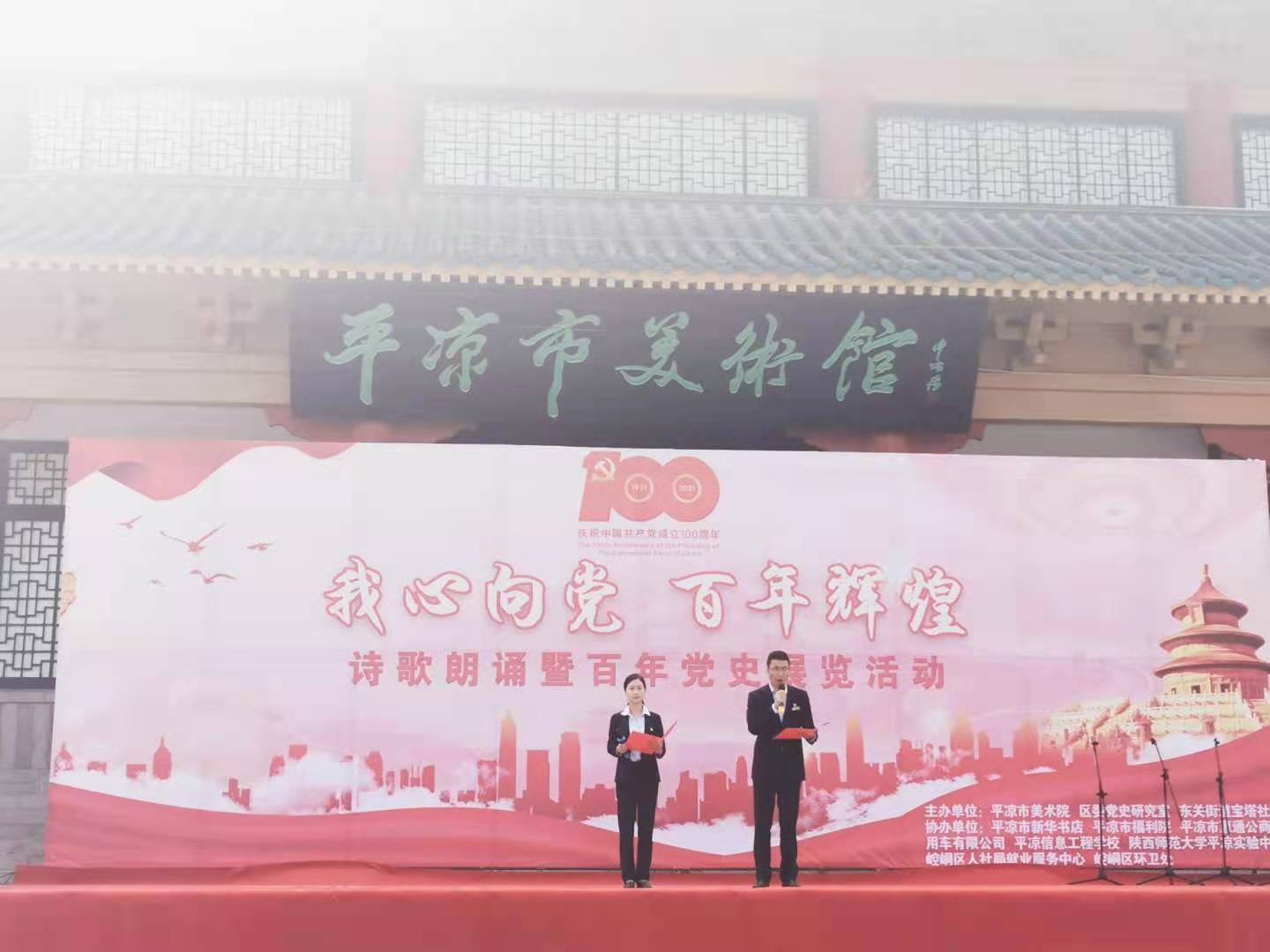 為慶祝中國共產黨建黨100周年,回顧黨的光輝歷程,謳歌黨的豐功偉績,引導平涼城鄉投(惠民)公司黨員、職工深刻了解黨的光輝歲月、感悟黨的初心使命、領會黨的創新理論、傳承黨的紅色基因。5月12日,市城鄉投資公司黨委受東關街道寶塔社區、平涼市美術館、區委黨史研究室聯合邀請,組織機關第一黨支部、機關第二黨支部、惠通公司黨支部、物業公司黨支部、文化傳媒公司黨支部、綠化公司黨支部、供應鏈管理公司黨支部共同開展“我心向黨 百年輝煌”詩歌朗誦暨百年黨史展覽活動。