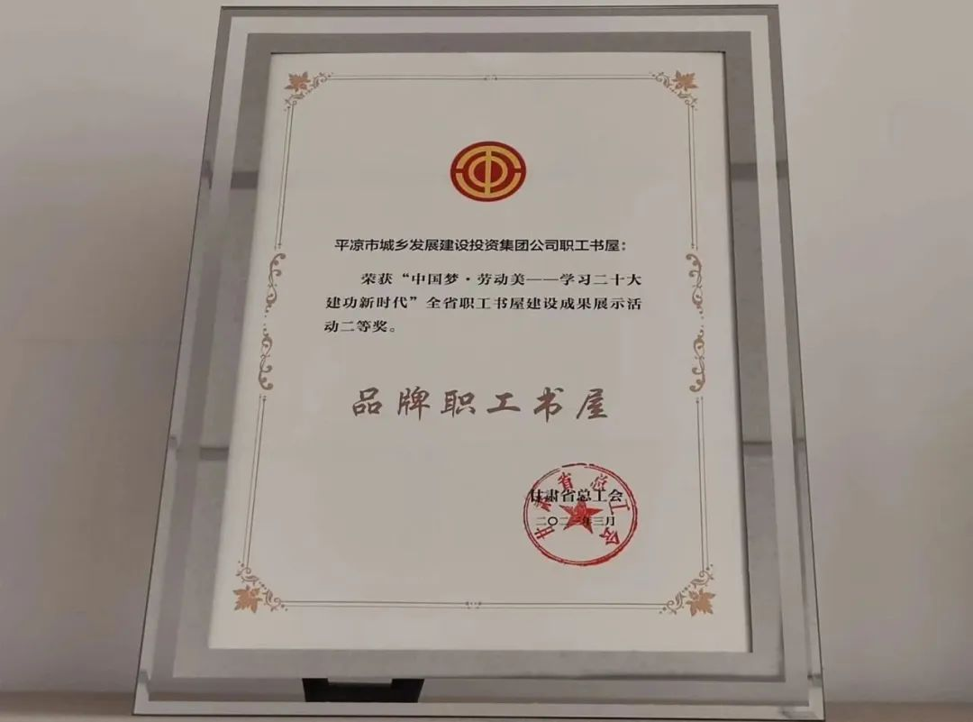 近日,由省總工會組織開展的“中國夢?勞動美——學(xué)習(xí)二十大 建功新時代”全省職工書屋建設(shè)成果展示活動、職工經(jīng)典誦讀征集展播活動評選結(jié)果揭曉,平?jīng)鍪谐青l(xiāng)發(fā)展建設(shè)投資集團(tuán)有限公司職工書屋榮獲“品牌職工書屋”。