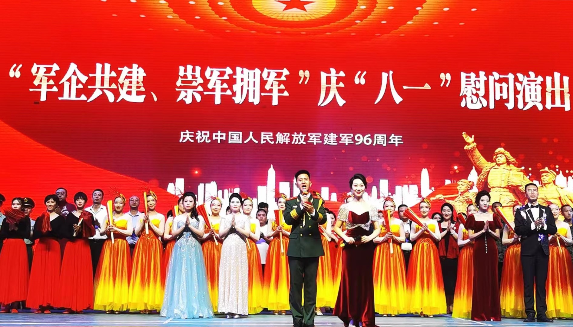 演出現場,集團公司干部職工與駐隊官兵同臺演出,用歌聲和舞蹈演繹著軍愛民、民擁軍的軍民關系。軍企相繼表演了舞蹈、獨唱、合唱、小品、才藝展示等十余個節目,一個個精心編排的節目將演出一次次推向了熱潮。動人的旋律、優美的舞姿、聲情并茂的表演贏得了現場觀眾的掌聲和喝彩,表現出當代軍人對祖國的熱愛與祝福,以及他們豐富多彩的精神世界和建功立業的崇高情懷,謳歌了部隊官兵熱愛祖國、扎根軍營、甘于犧牲、保家衛國的無私奉獻精神。