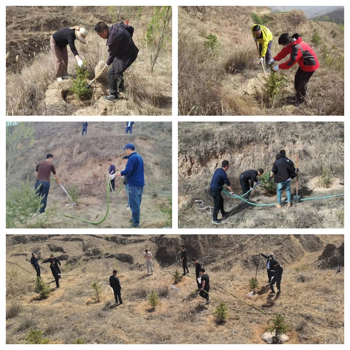 植樹現場,全體職工按照劃分的責任片區,在技術人員的指導下,分工協作,揮鍬鏟土、扶苗培根、提水澆灌,現場熱火朝天。經過近一天的辛勤勞動,四百余株新苗整齊矗立,為初春的大地增添勃勃生機。