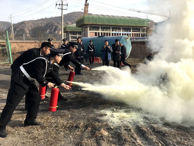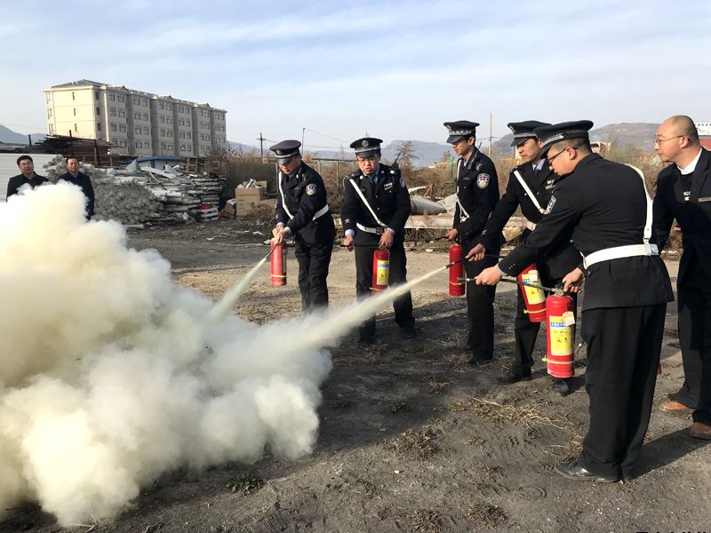 為使此次消防演練取得預期效果,惠民花園物管站根據(jù)消防應急預案和實際情況認真制定了演練方案。整個演練以模擬7號樓3單元301室業(yè)主使用電器不當引發(fā)火災為主線展開,值班保安在巡邏中發(fā)現(xiàn)7號樓3單元301室窗口冒煙,立即上門查看,結果發(fā)現(xiàn)該住戶家中起火,立即報告物管站負責人并撥打“119”報警,并在站長的指揮下啟動消防應急預案,展開自救。接到通知后的工作人員迅速向著火點集結,形成第一滅火力量,并及時疏散現(xiàn)場人群,保安人員設置警戒線,維護現(xiàn)場秩序,確保救援通道暢通。隨后,物管站人員進行了滅火實戰(zhàn)演練,演練前,物管站負責人講解了滅火操作的關鍵步驟和細節(jié),在鍋爐房空地點燃了兩堆可燃物,大火熊熊燃燒,工作人員攜干粉滅火器對可燃物進行了滅火,火警得以順利解除,演練圓滿完成。