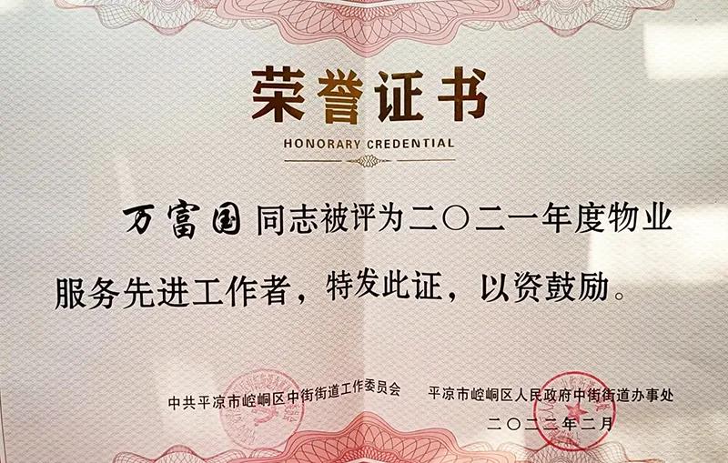2月11日,平涼市崆峒區中街街道召開2022年度物業管理工作大會,惠城物業公司被評為“2021年度優秀物業服務企業”,新北嘉園物業服務中心保安員萬富國同志榮獲“物業服務先進工作者”。此次榮譽的獲得,是社區和全體業主對物業服務、小區環境、文明氛圍的認可,更是對新北嘉園物業中心員工工作的肯定。