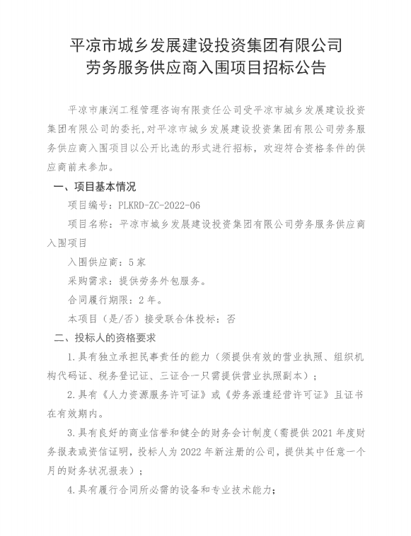 辦公用品、設備及耗材投標人入圍項目招標公告